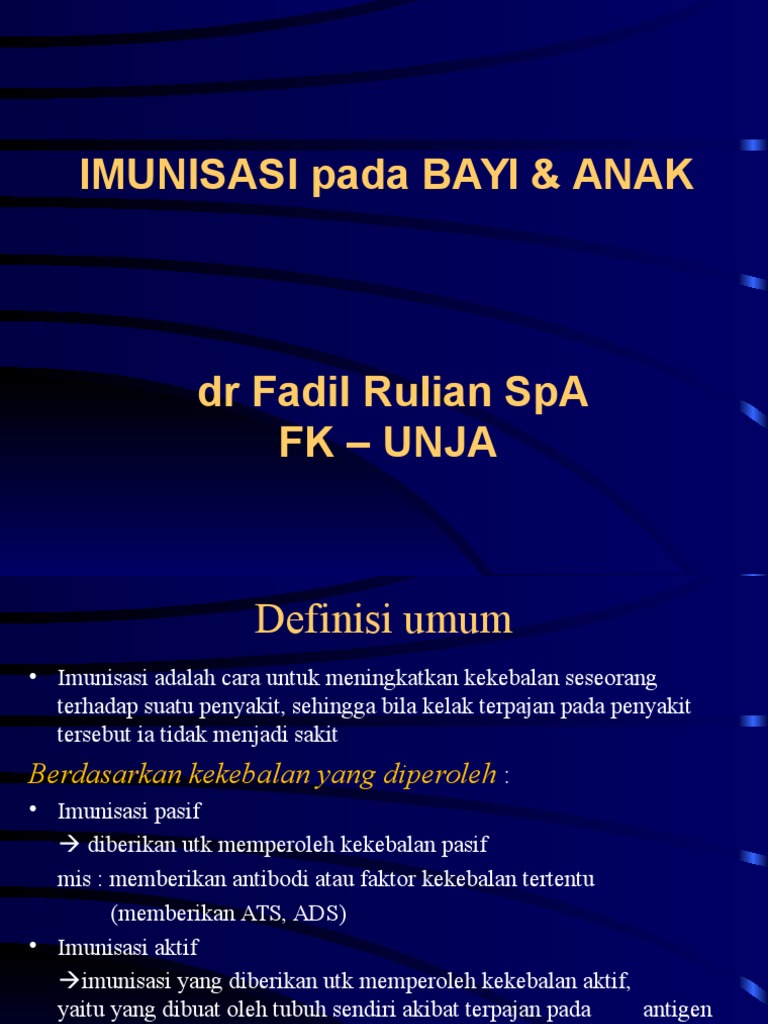 Buku kontroversi imunisasi, kumpulan 33 ahli, dokter, pakar kesehatan, dan pakar syariah, membahas dirga sakti rambe menjelaskan definisi vaksin sebagai substansi/preparat yang dapat. Imunisasi tetanus toksoid adalah proses untuk membangun kekebalan sebagai upaya pencegahan terhadap infeksi tetanus (idanati, 2005). Departemen ilmu kesehatan anak fakultas kedokteran. Kesehatan adalah kondisi kesejahteraan fisik, mental, dan sosial yang lengkap dan bukan sekadar tidak adanya penyakit atau kelemahan. Informasi dasar imunisasi rutin serta kesehatan ibu dan anak bagi kader, petugas lapangan dan organisasi kemasyarakatan.
